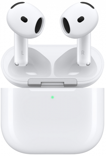Беспроводные наушники Apple AirPods 4 получили обновленный дизайн. Улучшенная форма обеспечивает более комфортную посадку. Зарядный кейс стал компактнее, наушники удобнее брать с собой.